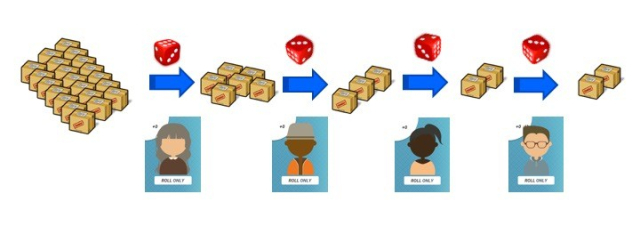 Roll will roll a 6-sided dice for the current workstation in the sequence. The resulting value represents the amount of work completed for that workstation.